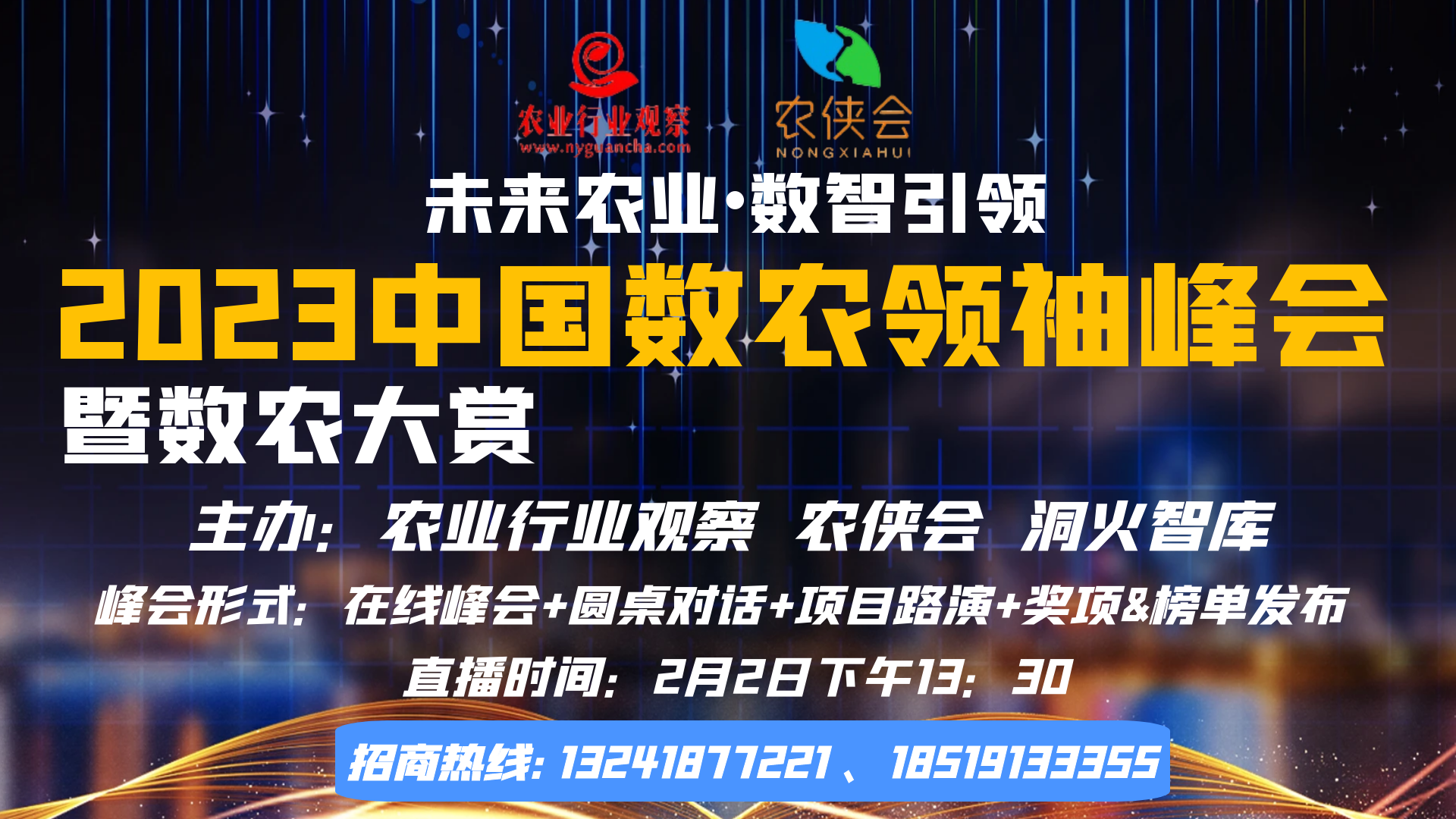 為了進一步推進中國農業數字化、智能化,農業行業觀察、農俠會攜手50家數字農業標桿企業、創始人發起2023中國數農領袖峰會,以“未來農業?數智引領”為主題,為中國農業數字化、智能化出謀劃策、共贏未來。