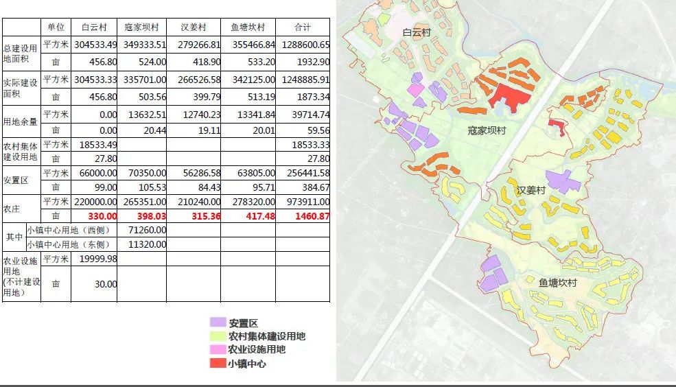 從下圖可以看到:安置區是按照村莊分散安置的,雖然建設用地較為分散,但為了解決這個問題,設計師還是在核心區域設置小鎮中心的,在核心區中實現有一定強度的集中開發。