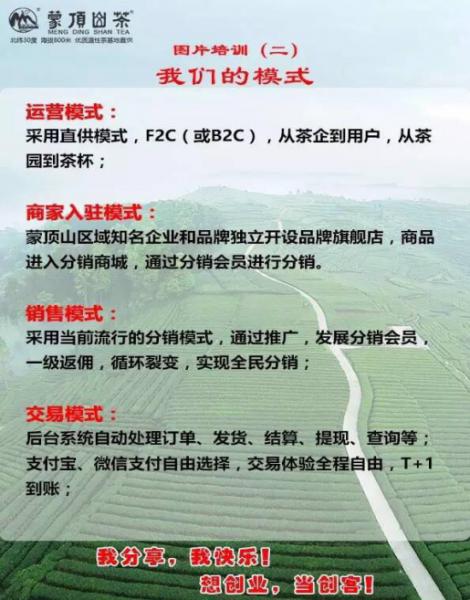 當前的茶業商業模式:批發、渠道商、零售商給喝茶愛好者提供優質的茶葉享受、給高端人士提供茶葉禮品包裝。以上的商業模式都是通過銷售茶葉產品帶來利潤。蒙頂山茶直供網的模式“玩”出了高水準。 先上一張圖片!這張..